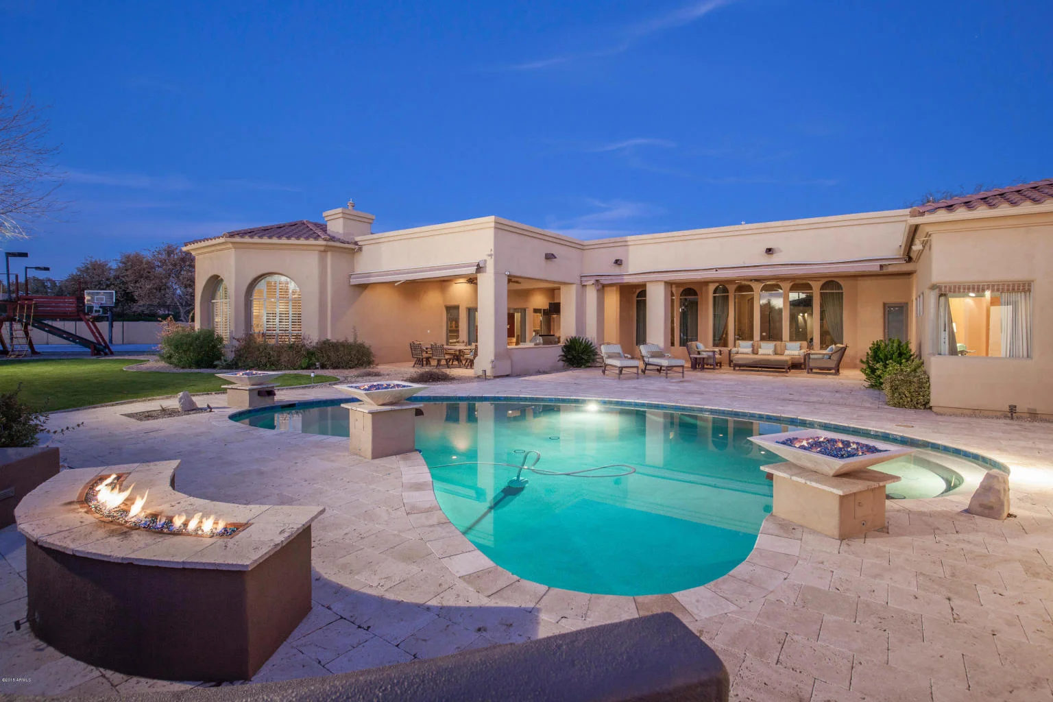 Your new smart home is located in a small-gated community. Each en-suite room is very large and all with walk in closets. Not one, but two home offices for the business professional. Entertainment is a breeze indoor or outside. Inside the spacious kitchen area is a great conversational sitting area and bar. Watch multiple shows/games in the game room or simply just play a couple of games. Staying at home and enjoying a movie is perfect in this custom movie theatre. Outside, the covered patio is wonderful for relaxing and enjoying the sunset view. You can also enjoy a game of basketball/tennis or work on your putting game. In the casita you can stay in shape with the fully equipped workout room or record your favorite songs in the music studio. Whatever the weather, your storage and car will be protected in the climate-controlled garage. This home is impressive! Come and take a look at your new home and its other features today.