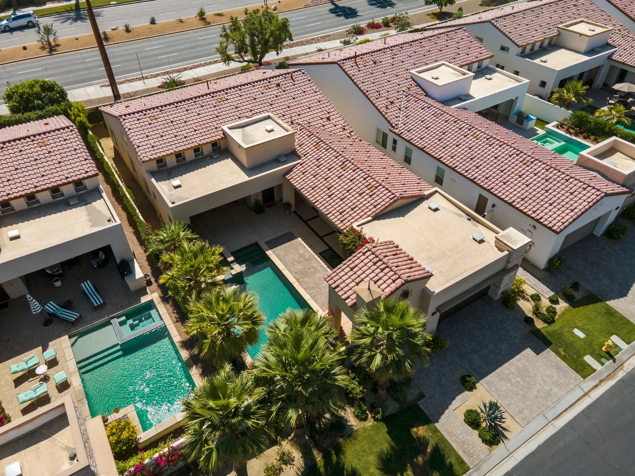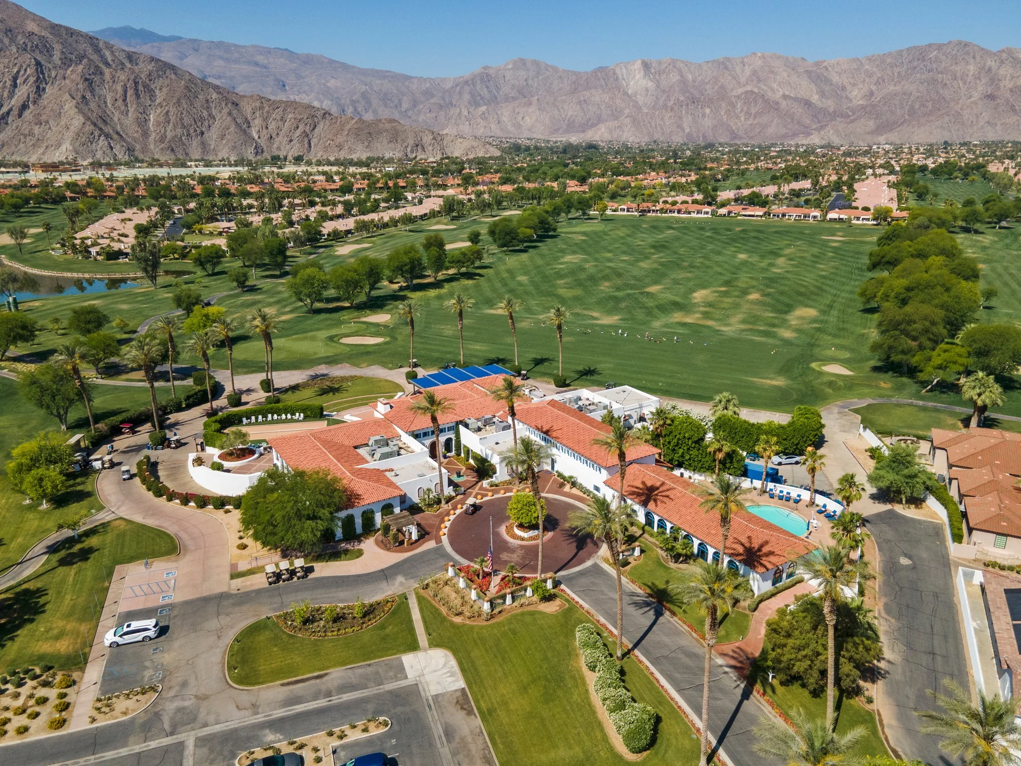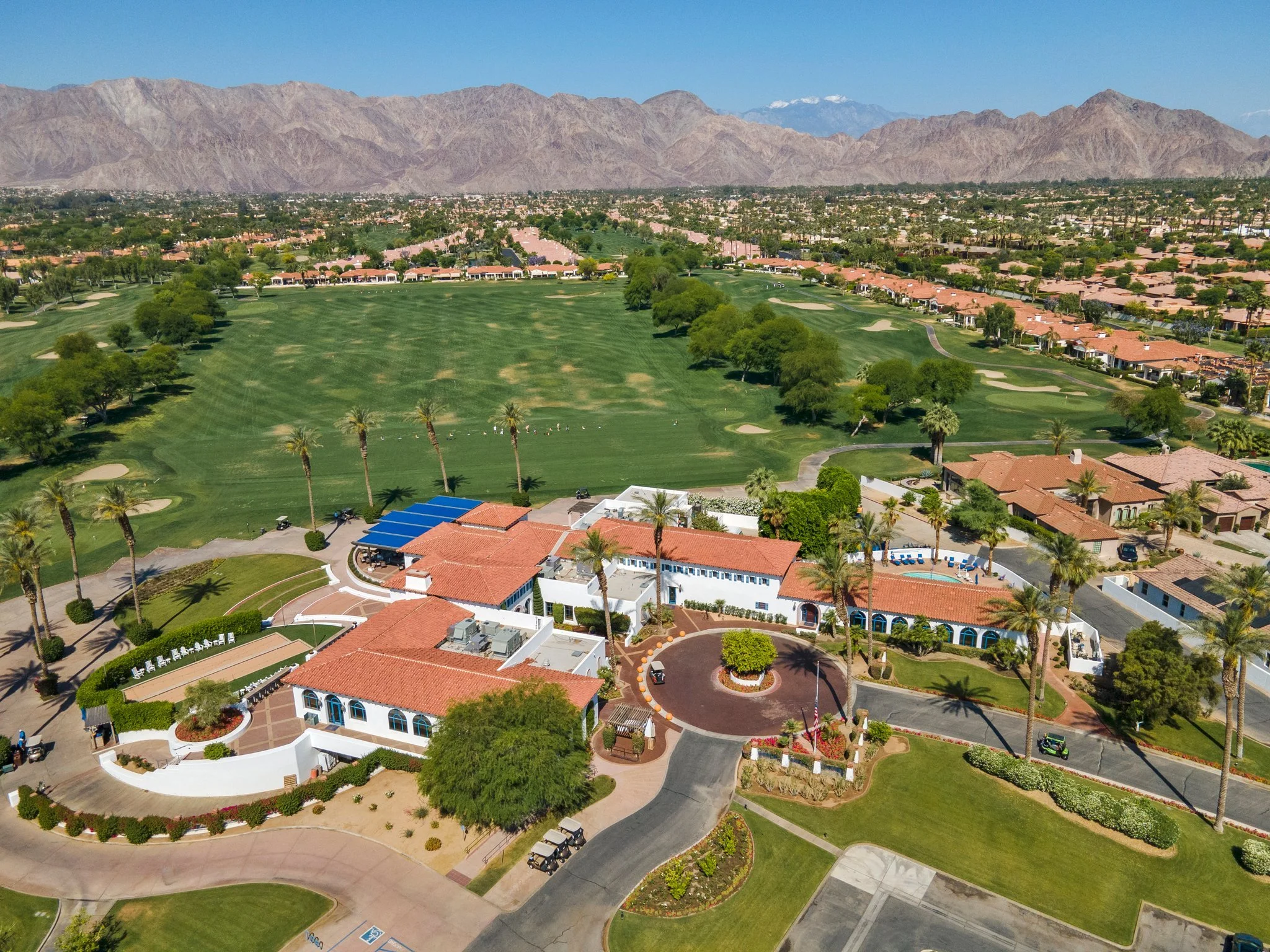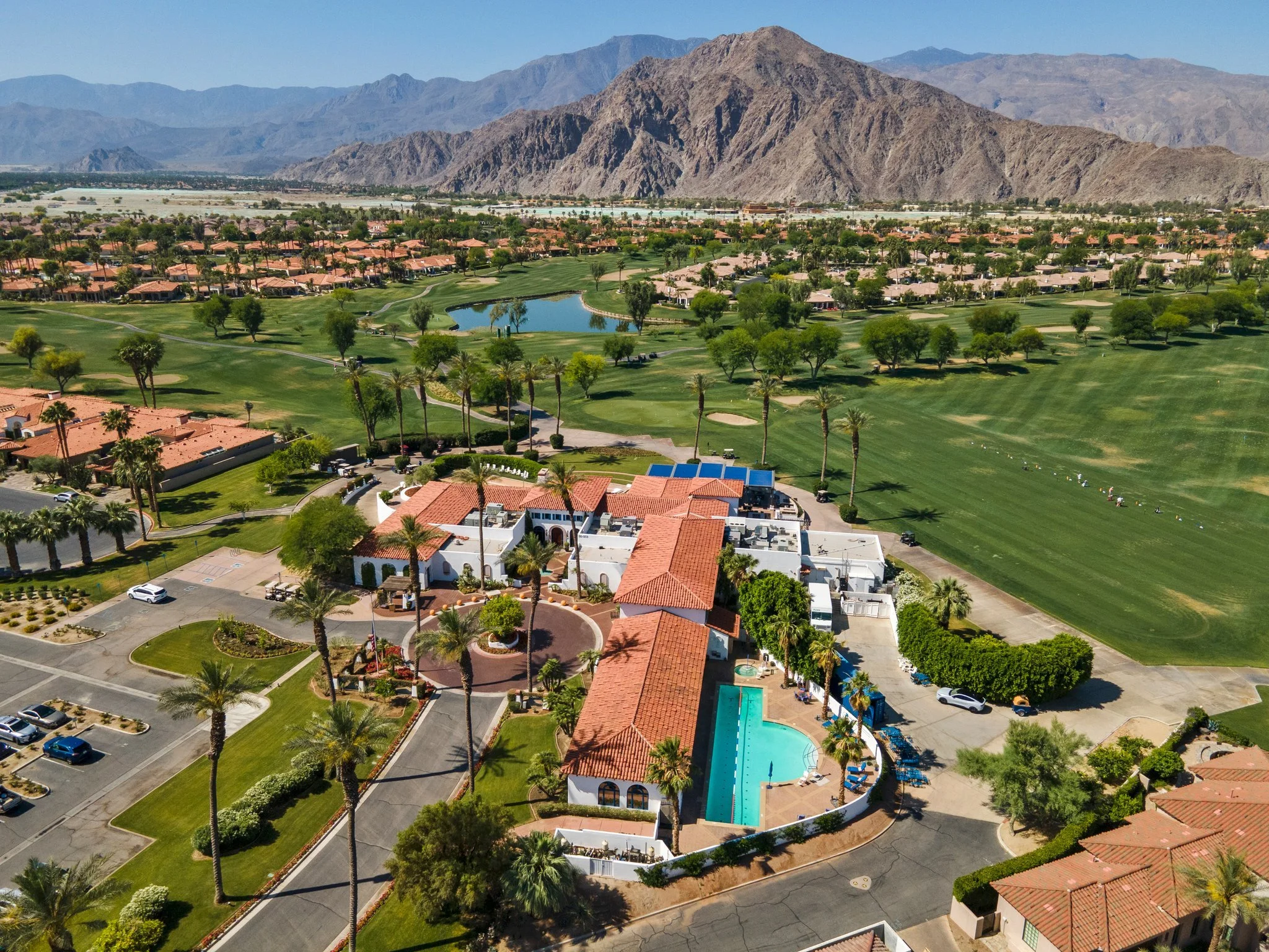 Located in the prestigious Citrus Country Club, this amazing villa offers a luxurious and low-maintenance desert lifestyle. Step inside this newly built home and be greeted by an open floor plan designed to seamlessly blend indoor and outdoor living. The family room features impressive 16'' high ceilings and pocket doors that disappear into the wall, creating a seamless transition to the exterior living room. Enjoy the beautiful desert weather as you entertain guests or simply relax in the comfort of your own home. The chef's kitchen is a true delight, equipped with top-of-the-line stainless steel appliances, an oversized built-in Kitchen-Aid fridge, a large island, and exquisite quartz countertops. Prepare gourmet meals with ease while enjoying the company of your loved ones in the adjacent family and dining areas. The large master suite offers a serene retreat with French doors that open to a secluded patio. Pamper yourself in the master bath, complete with a spacious glass-walled shower and ample closet space. Each of the three bedrooms comes with its own private bath, ensuring privacy and comfort for all. Custom window treatments throughout the home add a touch of elegance and provide privacy when desired. Step outside to your own private oasis. The salt-water pool beckons for a refreshing swim, surrounded by beautiful palm trees that create a tranquil ambiance. Spend leisurely afternoons lounging by the pool or hosting unforgettable gatherings with friends and family. With a two-car garage and additional space for a golf cart, this home offers practicality alongside its luxurious features. Whether you're looking for a vacation home or a permanent residence, this pool villa is ready to fulfill your dreams of desert living.