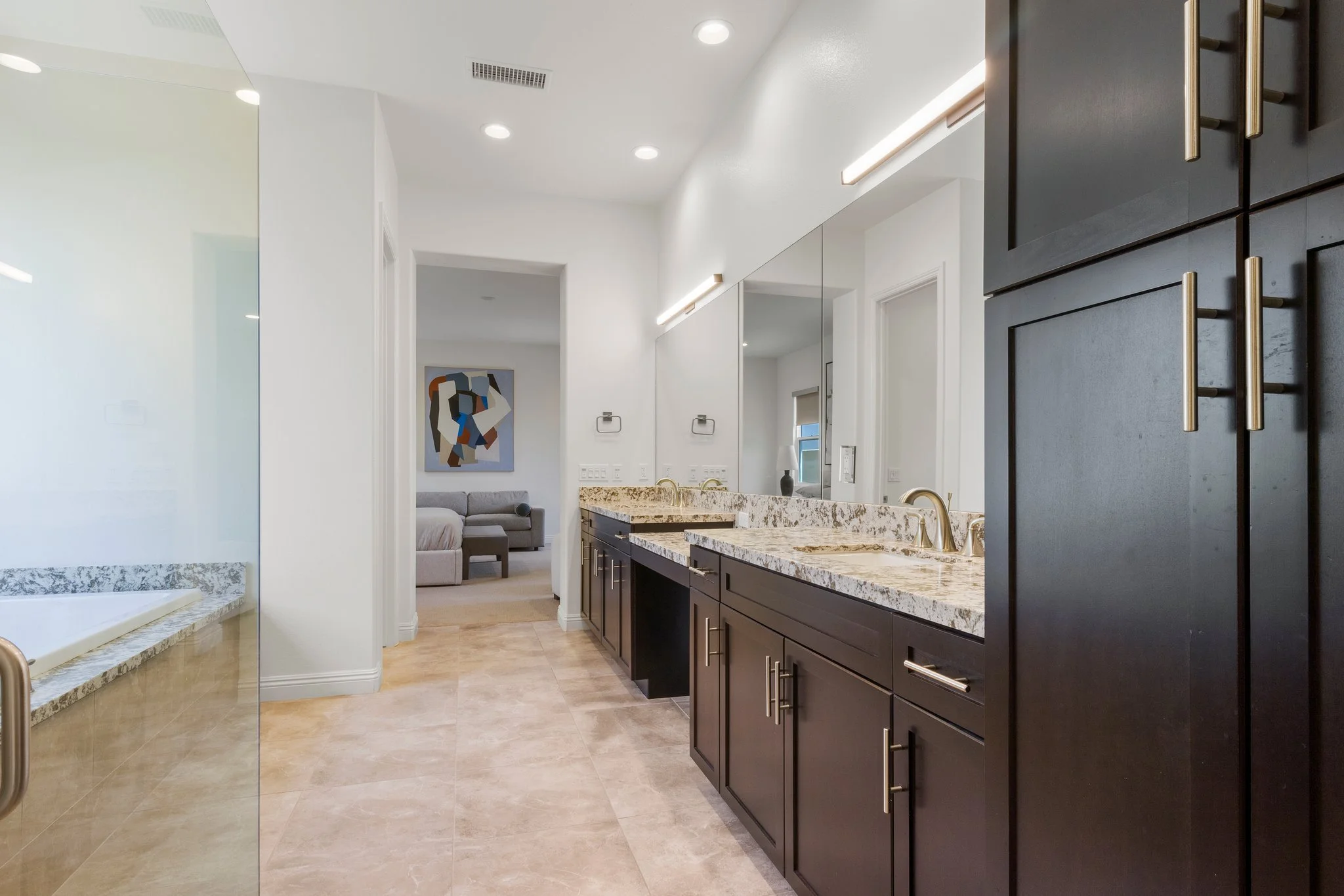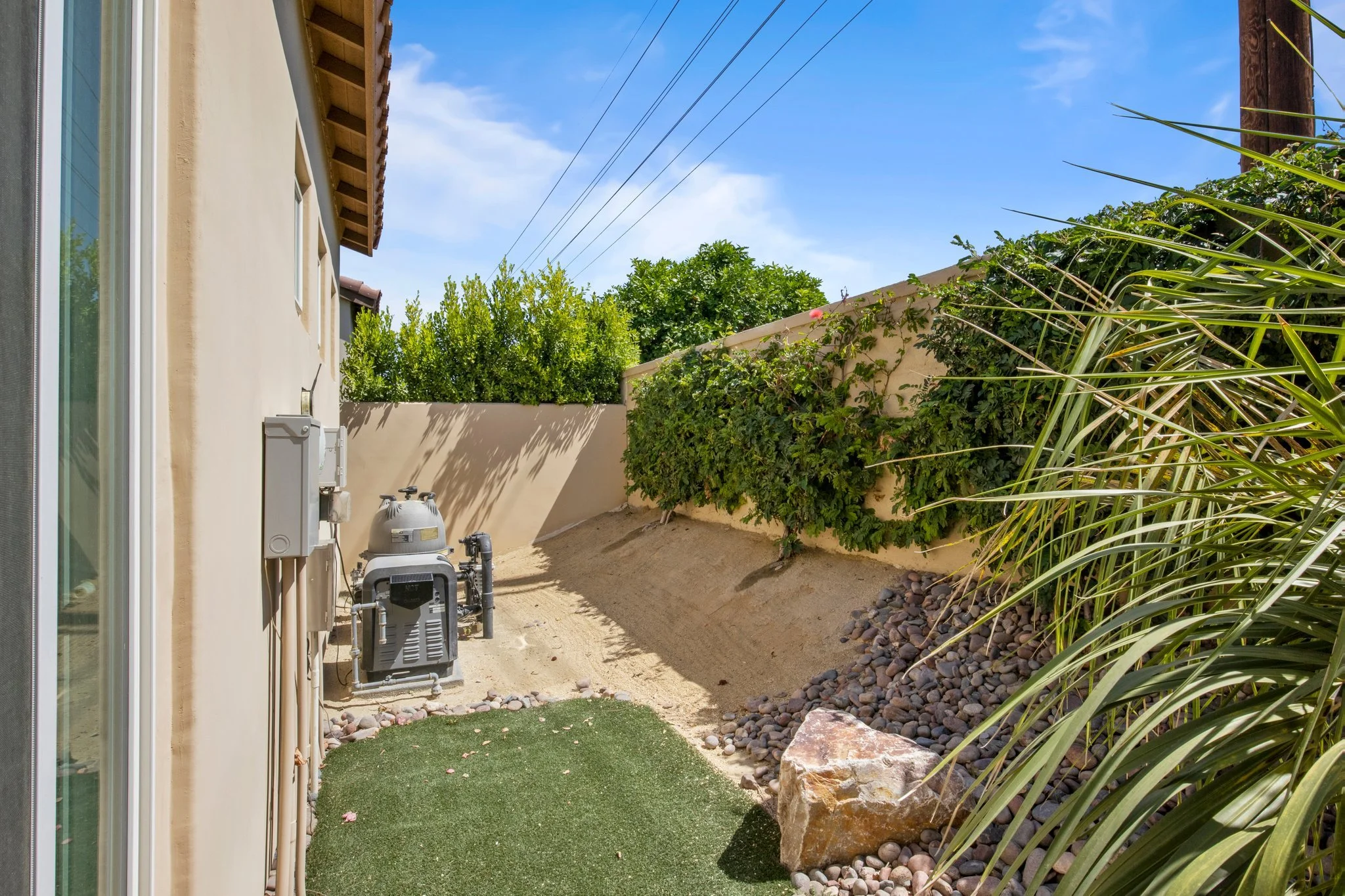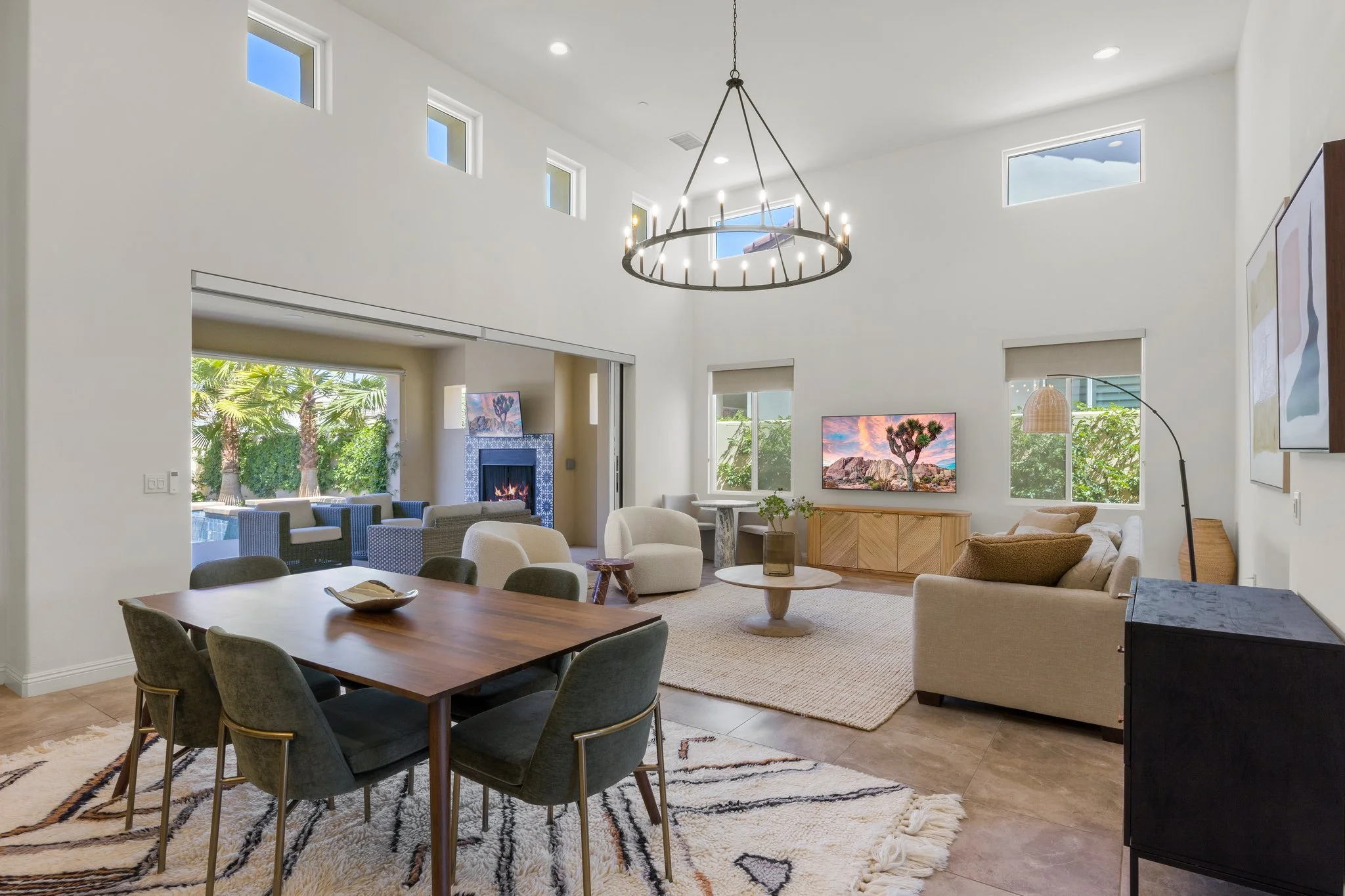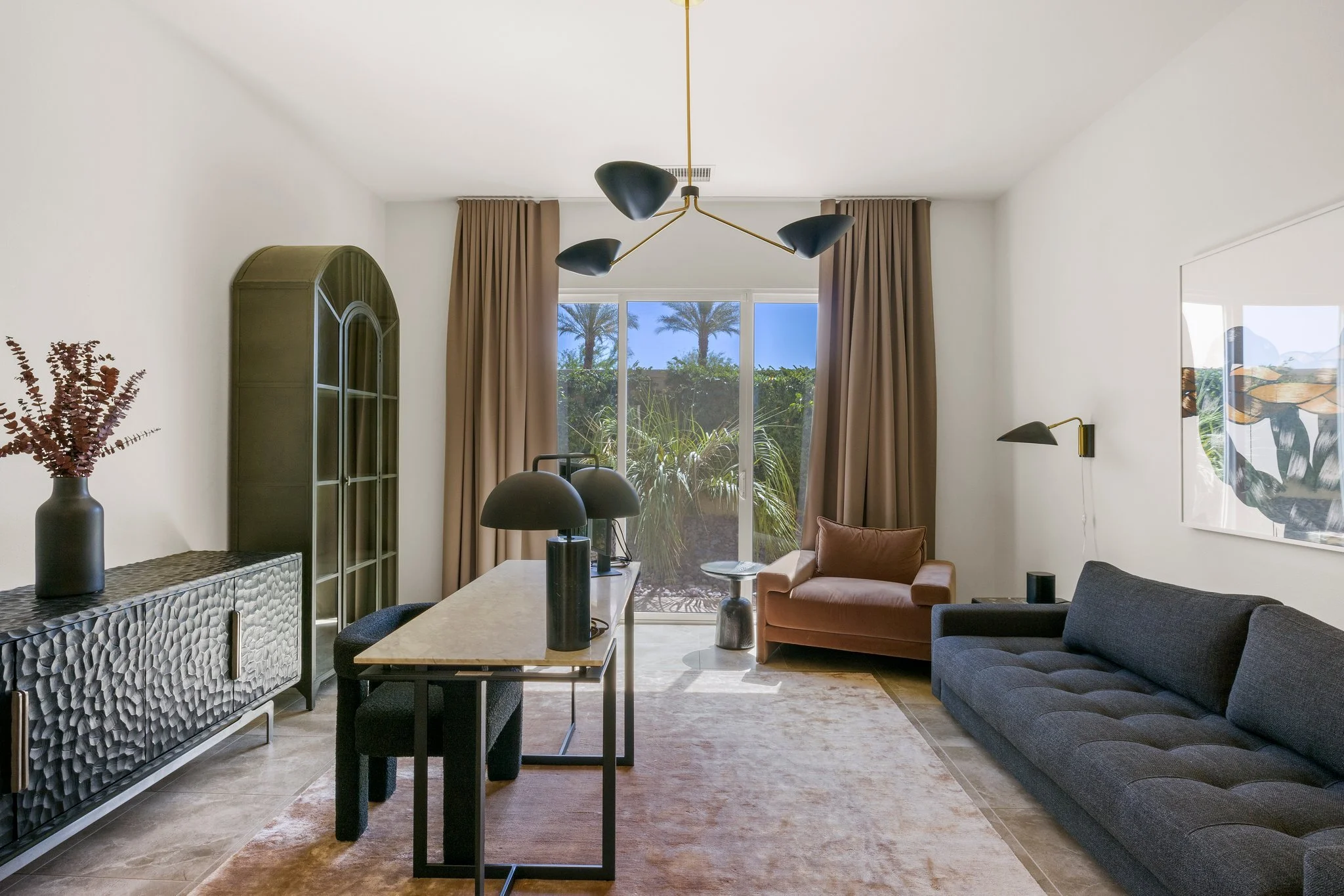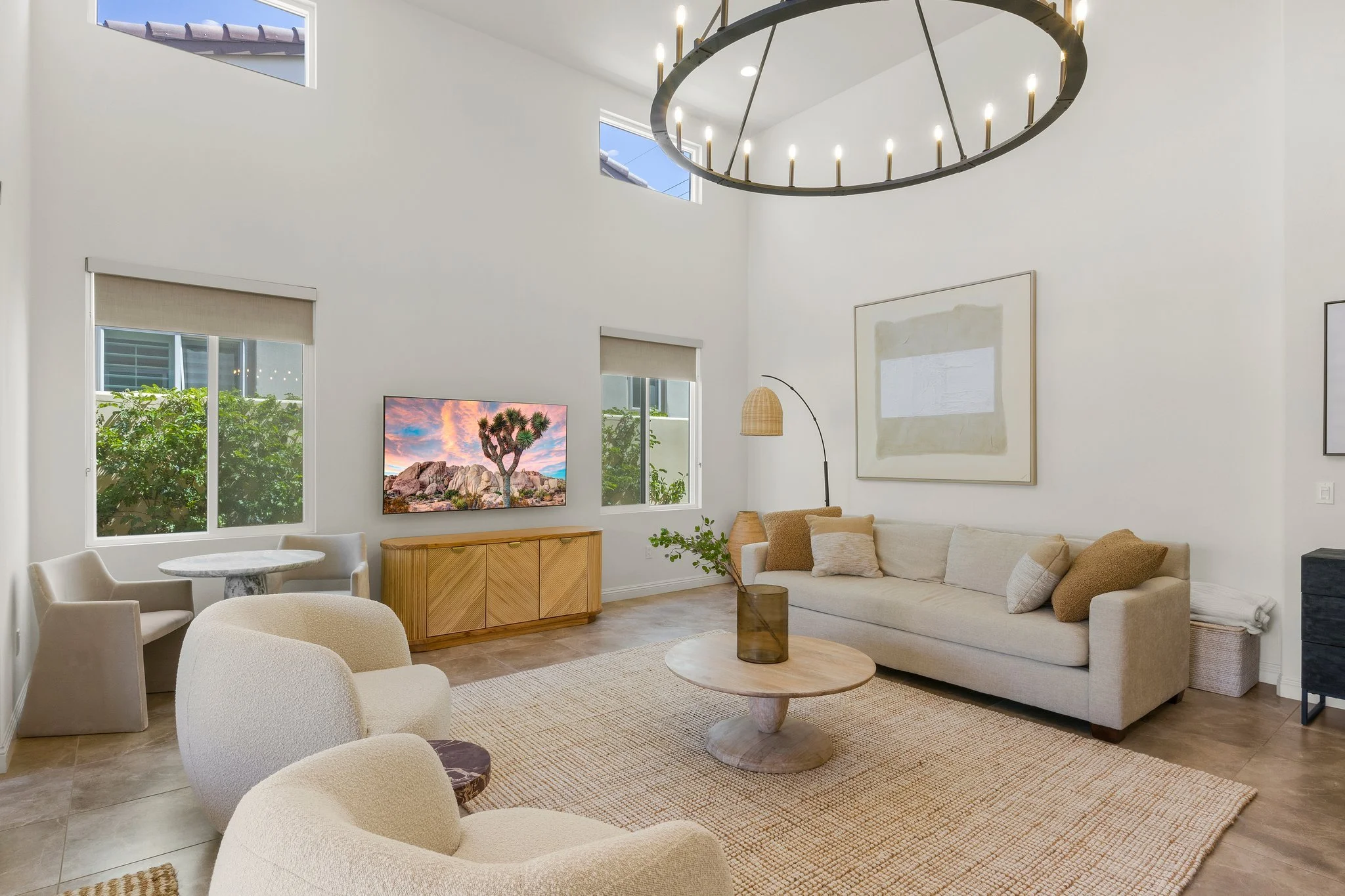 Located in the prestigious Citrus Country Club, this amazing villa offers a luxurious and low-maintenance desert lifestyle. Step inside this newly built home and be greeted by an open floor plan designed to seamlessly blend indoor and outdoor living. The family room features impressive 16'' high ceilings and pocket doors that disappear into the wall, creating a seamless transition to the exterior living room. Enjoy the beautiful desert weather as you entertain guests or simply relax in the comfort of your own home. The chef's kitchen is a true delight, equipped with top-of-the-line stainless steel appliances, an oversized built-in Kitchen-Aid fridge, a large island, and exquisite quartz countertops. Prepare gourmet meals with ease while enjoying the company of your loved ones in the adjacent family and dining areas. The large master suite offers a serene retreat with French doors that open to a secluded patio. Pamper yourself in the master bath, complete with a spacious glass-walled shower and ample closet space. Each of the three bedrooms comes with its own private bath, ensuring privacy and comfort for all. Custom window treatments throughout the home add a touch of elegance and provide privacy when desired. Step outside to your own private oasis. The salt-water pool beckons for a refreshing swim, surrounded by beautiful palm trees that create a tranquil ambiance. Spend leisurely afternoons lounging by the pool or hosting unforgettable gatherings with friends and family. With a two-car garage and additional space for a golf cart, this home offers practicality alongside its luxurious features. Whether you're looking for a vacation home or a permanent residence, this pool villa is ready to fulfill your dreams of desert living.